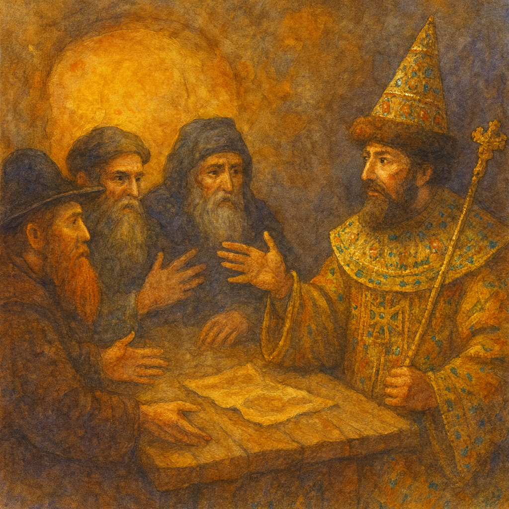 Ivan III, unaccustomed to such gatherings, remained in the shadows, observing the proceedings. He was intrigued by how these people, gathered from all corners of Moscow, could influence the fate of the world while sitting in a darkened hall with ancient tomes.