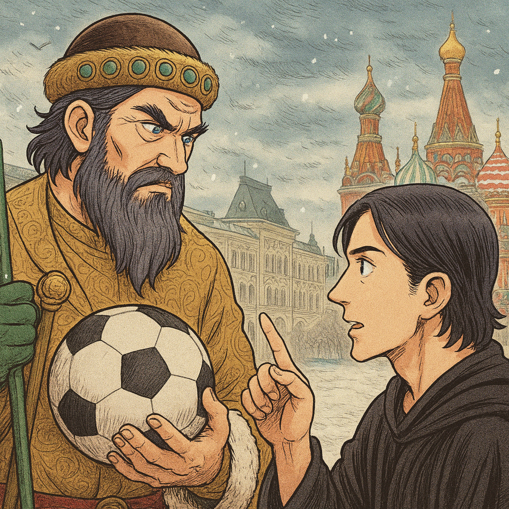Оказалось, что оба они оказались втянуты в спор о футболе. Да-да, именно о футболе! Иван, привыкший решать дела государственной важности, вдруг увлёкся этой игрой, о которой узнал от путешественника, прибывшего из дальних краёв. Генрих же, будучи человеком прогрессивным, в свои времена уже слышал об этой забаве от английских коллег, и интерес его был вполне деловым: кто знает, может, духи для спортсменов станут следующим хитом?
